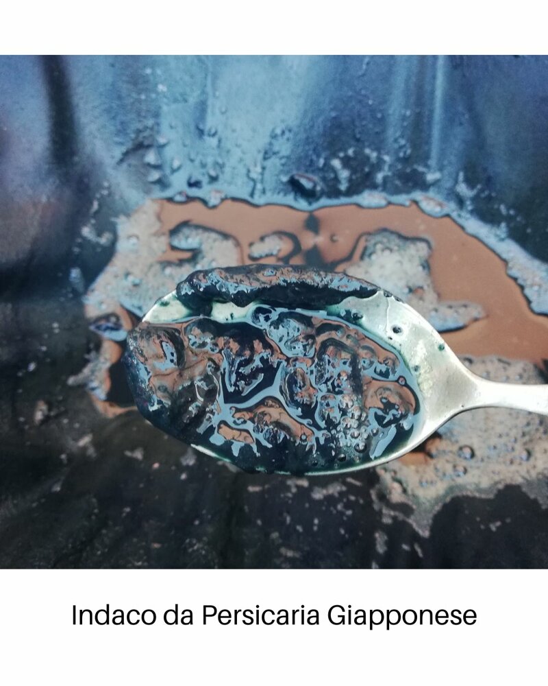 Polvere di Indaco estratto da piante di Persicaria Giapponese, coltivate a Mantova.