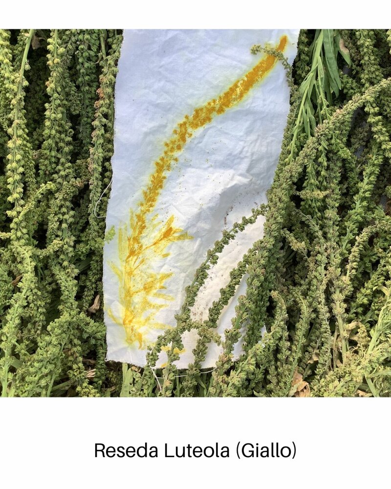 La Reseda luteola è una pianta tintoria erbacea di gran tinta,nota fin dall'antichità per la solidità del suo colore anche nella tintura del cotone. Ne basta il 30% rispetto al peso asciutto del tessuto da tingere, per avere una tinta piena, forte e di un giallo intenso. Se vi accorgete che il giallo risulta freddo potete ravvivarlo con un cucchiaino di carbonato di calcio o carbonato di sodio.